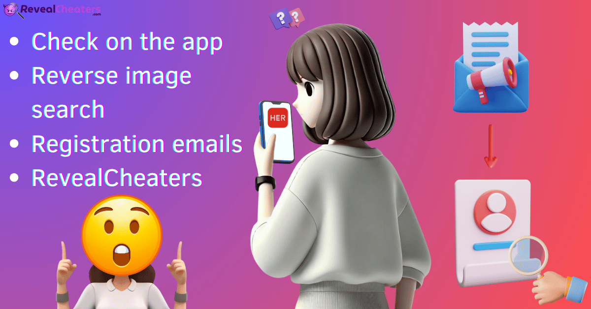 n Besides looking at their phone for evidence of dating apps like Her or what they use daily, you can also search on your own online and find interesting results. If you have their email, for example, a registration email for this app, it can be a huge piece of evidence, or even doing a reverse image search can show some results about dating apps that you didn't know.